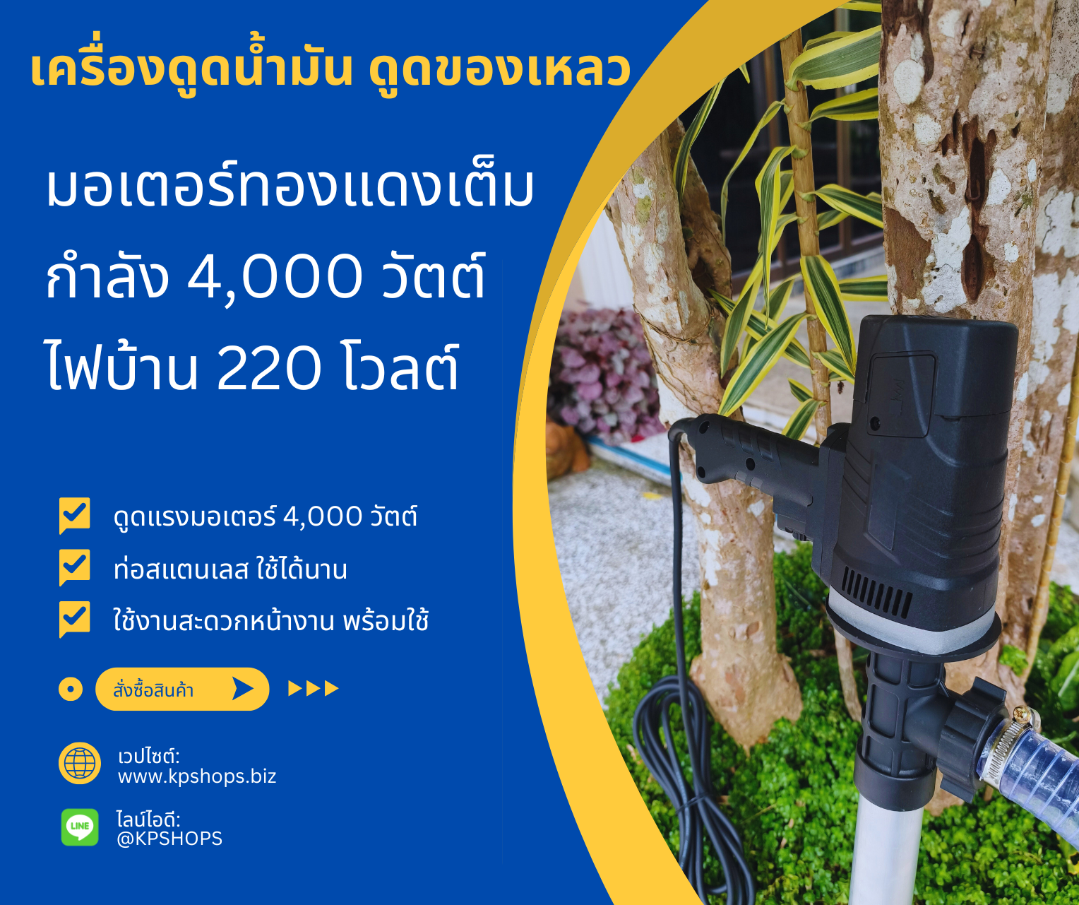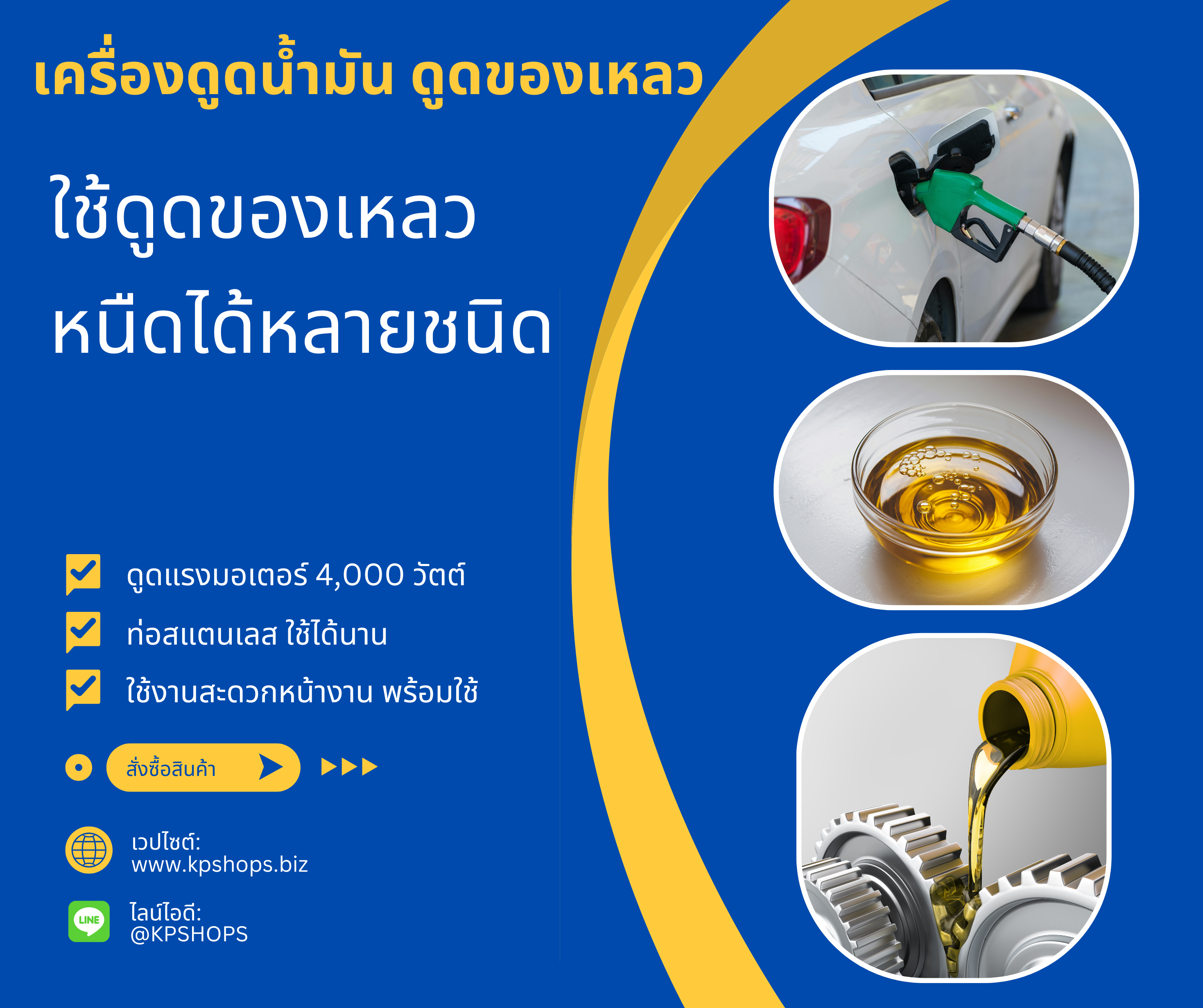 เครื่องดูดน้ำมัน/ดูดของเหลวหนืด มอเตอร์ 4,000 วัตต์ ท่อสแตนเลส ใช้งานง่ายพร้อมใช้ เหมาะกับน้ำมันหล่อลื่น น้ำมันเกียร์ น้ำมันไฮดรอลิก และของเหลวหนืดทุกชนิด