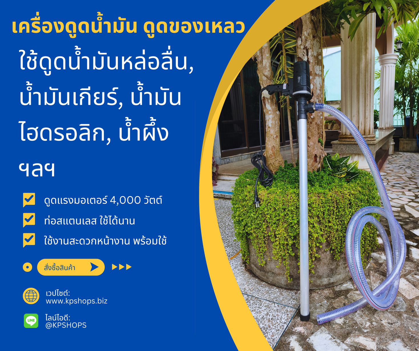 เครื่องดูดน้ำมัน/ดูดของเหลวหนืด มอเตอร์ 4,000 วัตต์ ท่อสแตนเลส ใช้งานง่ายพร้อมใช้ เหมาะกับน้ำมันหล่อลื่น น้ำมันเกียร์ น้ำมันไฮดรอลิก และของเหลวหนืดทุกชนิด